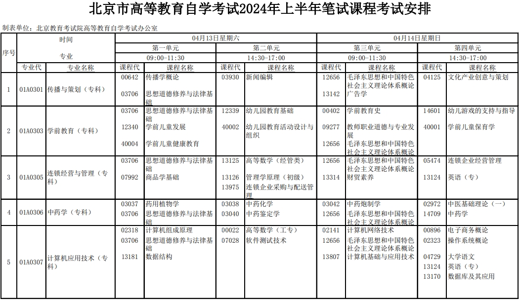 上一篇:2024年4月北京市自考新闻学考试安排表(01A0317专科)