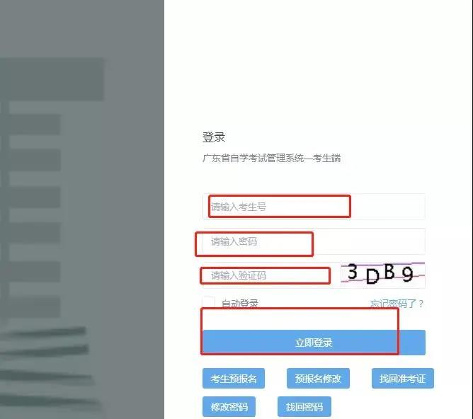 1、登录广东省自学考试管理系统,点击【点击进入】按钮进入考生登录页面。