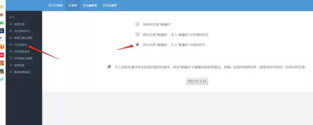 考生须在考前14天每天登录粤康码进行个人健康申报。