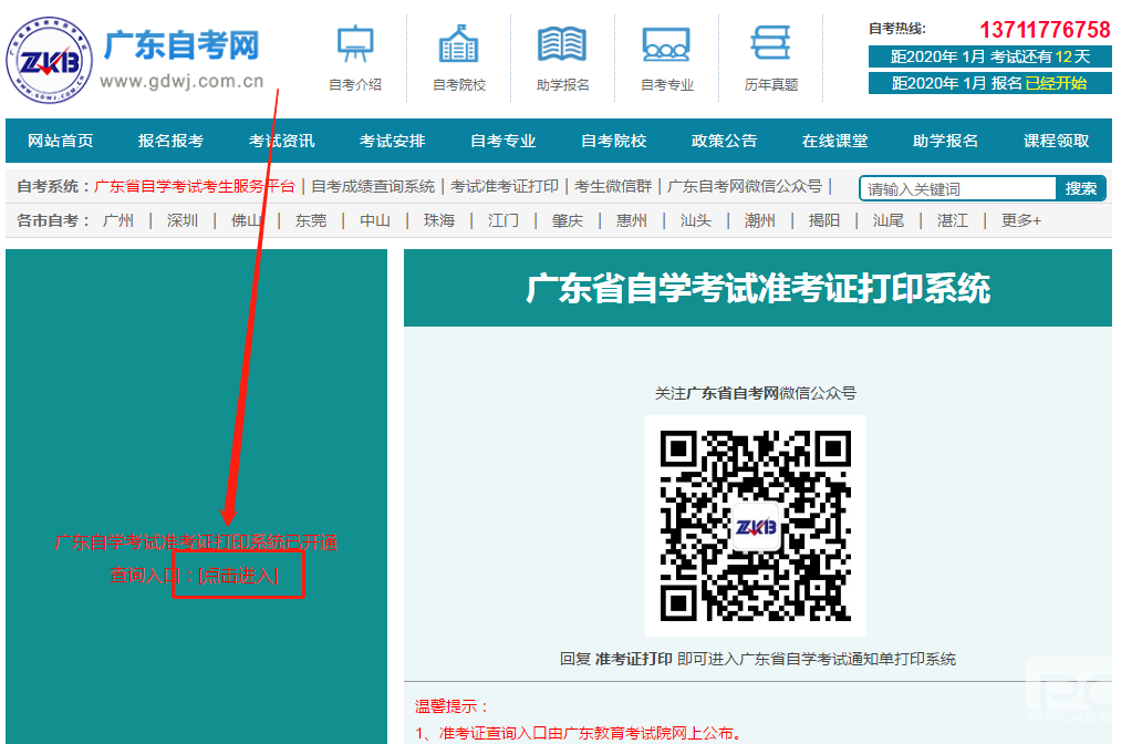 1、考生进入广东自考网准考证打印系统(可通过以上链接进入)