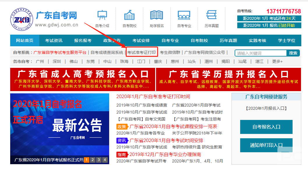1、考生进入广东自考网(http://www.gdwj.com.cn/),进入准考证打印系统